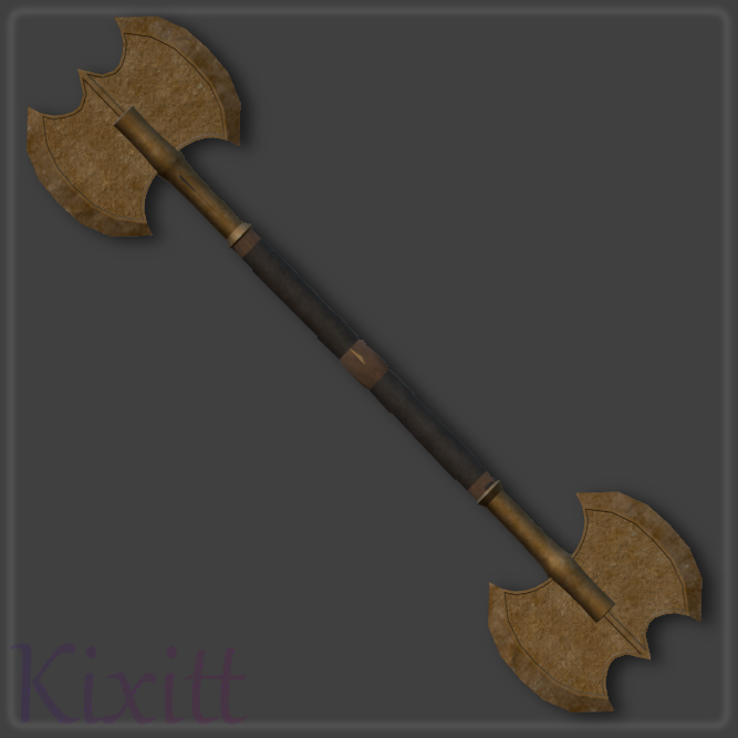 A twinblade, but instead of slim blades, the heads are double-bitted axe heads